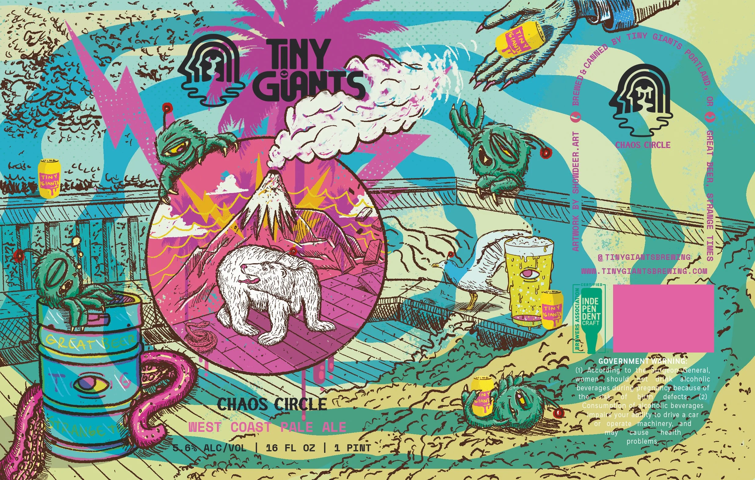 This west coast pale ale is a collaboration between Tiny Giants and the great people at Foreland Beer and distributed by Day One Distribution. Keep an eye out for more labels featuring creatures and characters from the Tiny Giants universe! Specifically that wolfman hand in the top right!